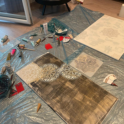 Ich nehme mir Zeit, bereite den Raum mit Kerzen, Meditation, Musik und Räucherwerk vor und verbinde mich mit dir, der beschenkten Person und dem Universum. Intuitiv lasse ich mich leiten und beginne mit Liebe zu malen und zu kreieren.